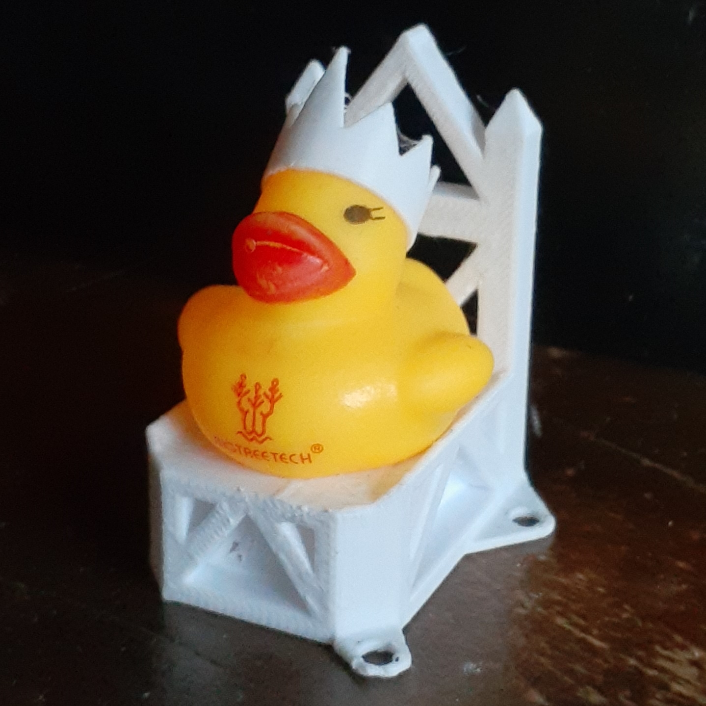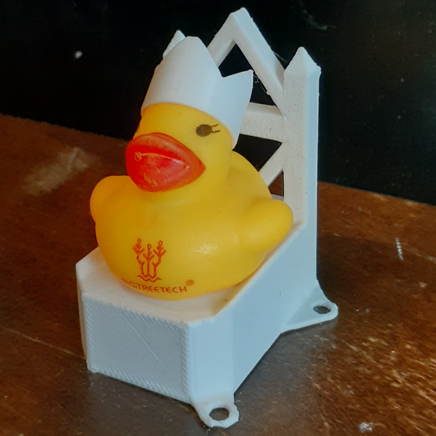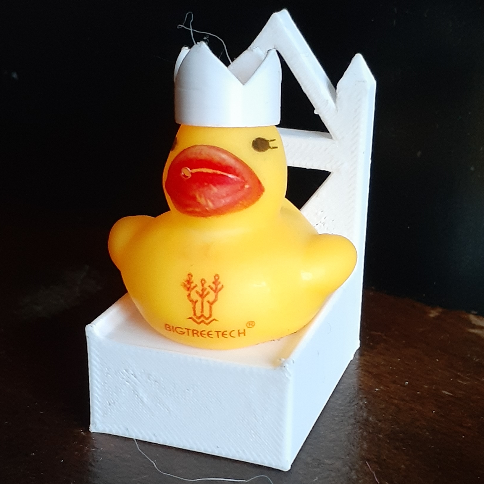 Along with Bigtreetech boards comes a BTT Ducky. She is the lady of first layer adhesion and thus having her around helps with first layer adhesion, so why not give her a comfrotable throne and a beautiful crown to appease her?