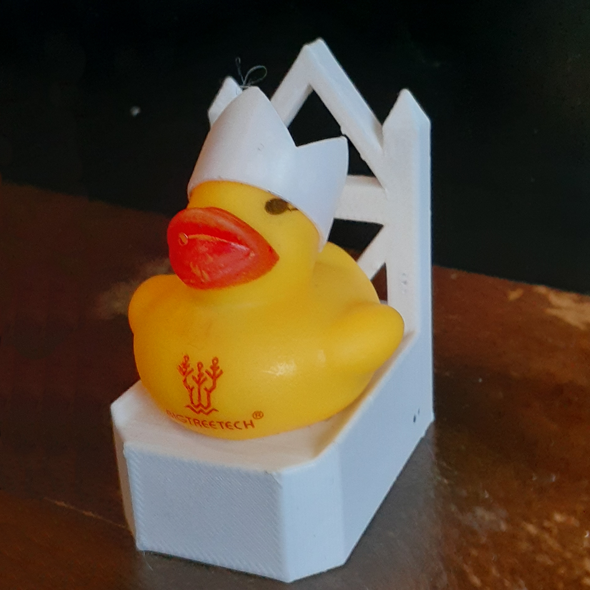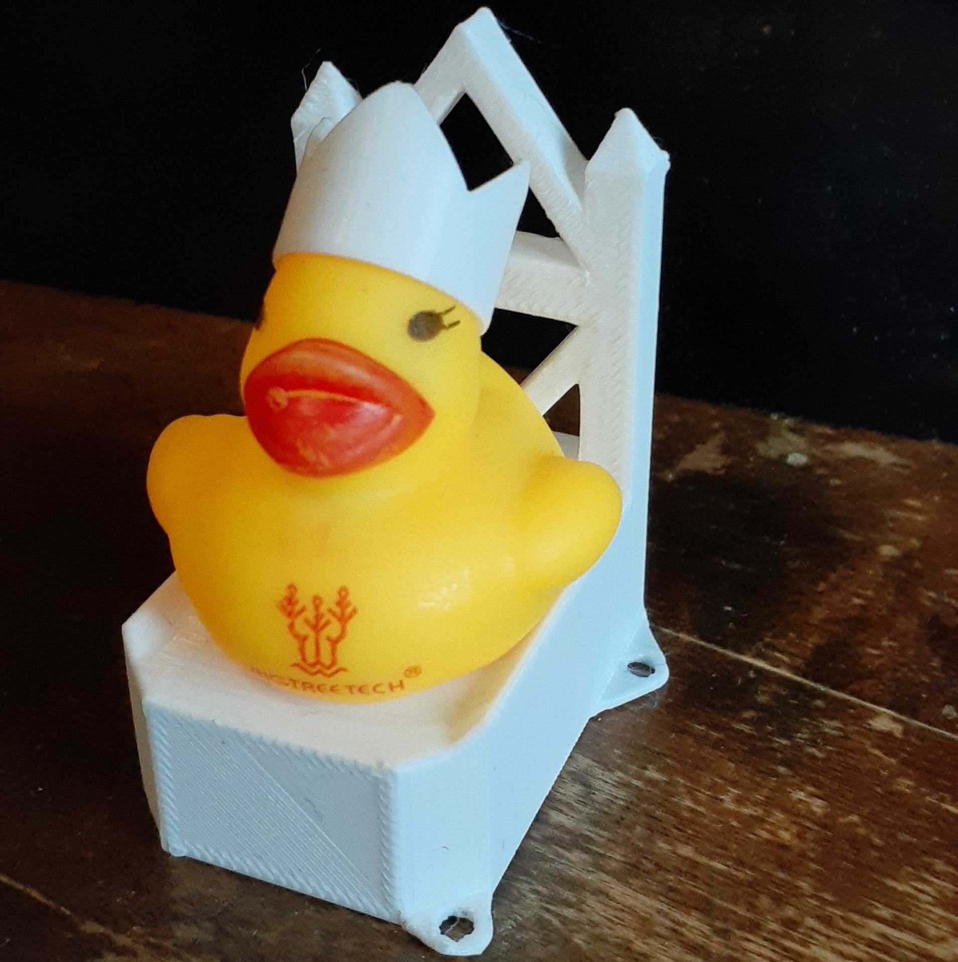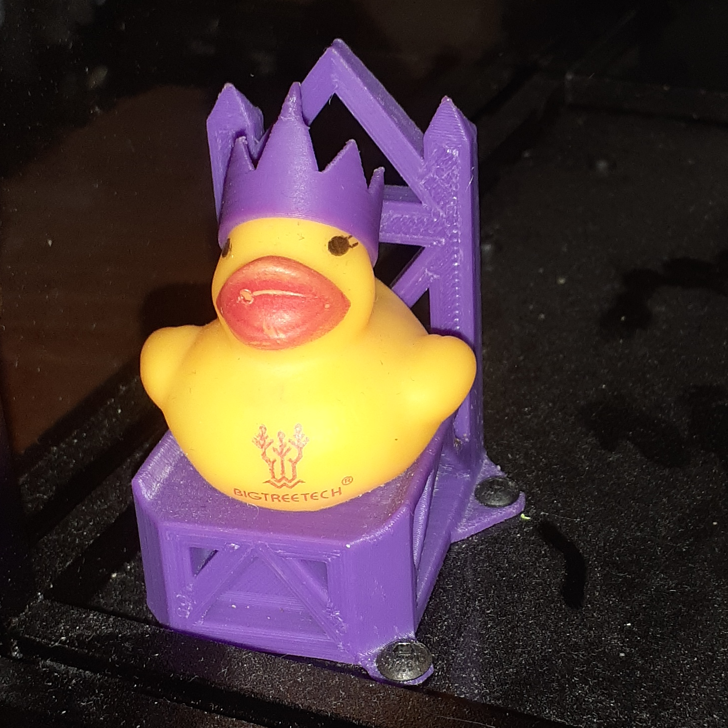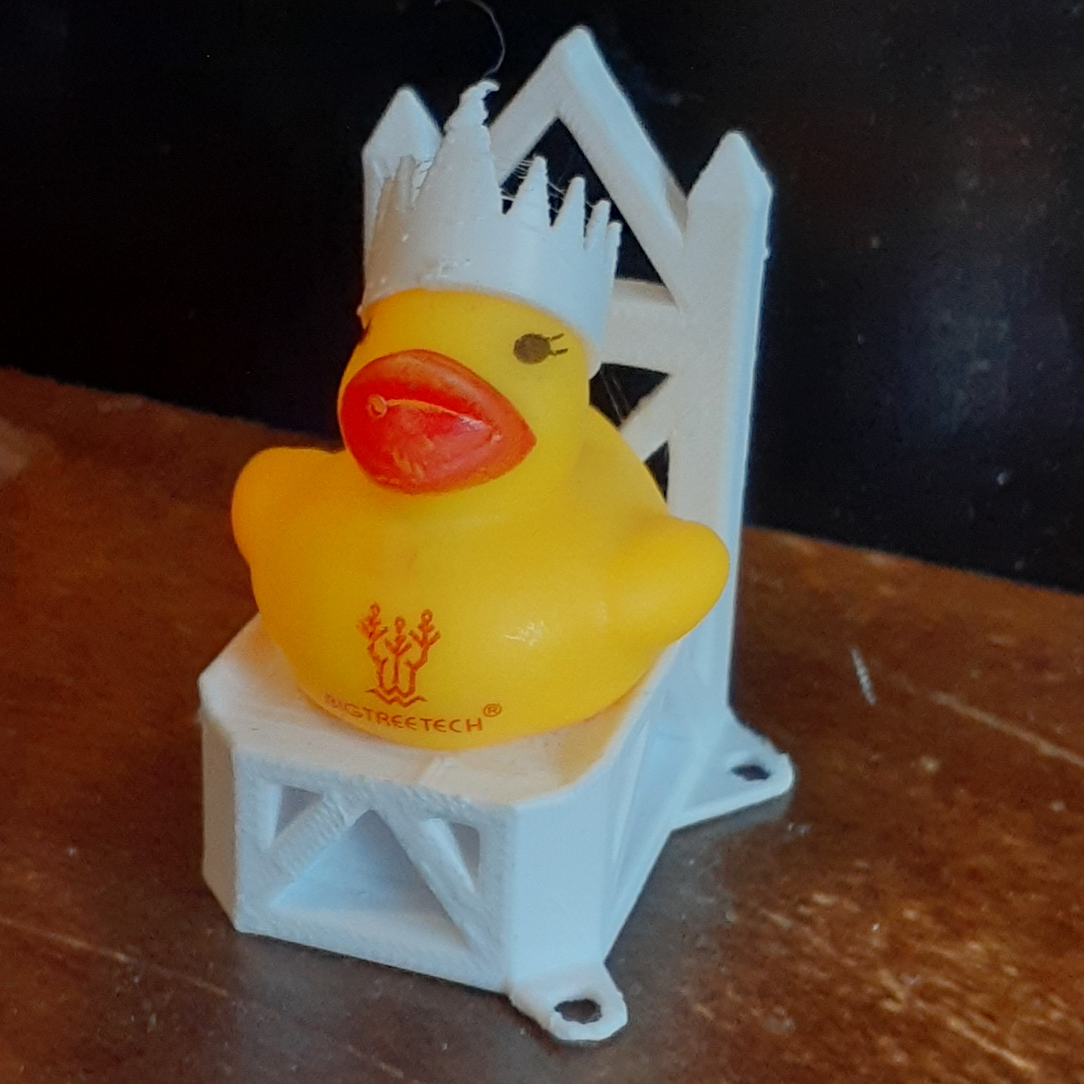 Along with Bigtreetech boards comes a BTT Ducky. She is the lady of first layer adhesion and thus having her around helps with first layer adhesion, so why not give her a comfrotable throne and a beautiful crown to appease her?